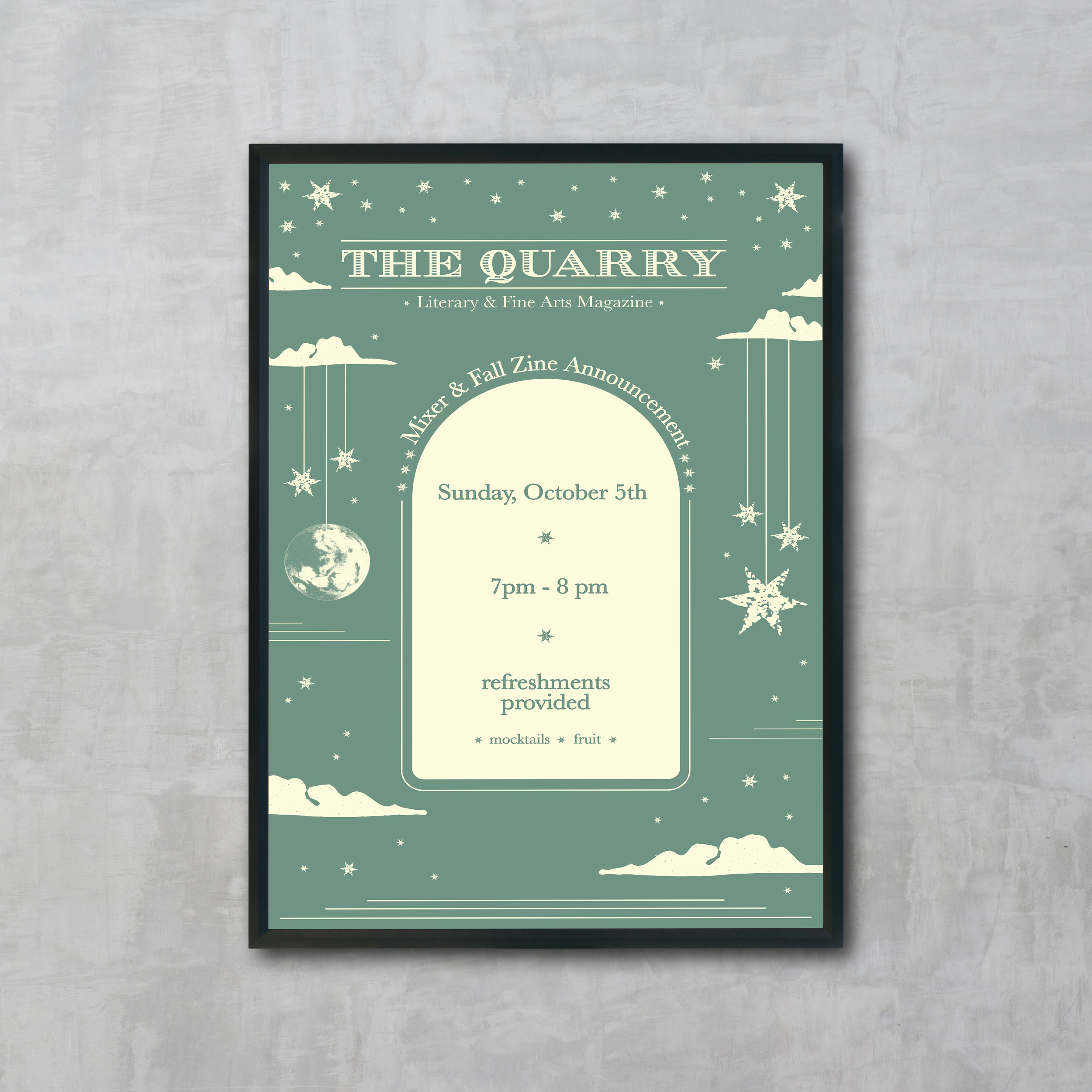 Contrasting our spring 2026 theme, fall introduced a “moon” motif. I designed this season’s deliverables using muted greens, blues, star and moon illustrations, and collage digital imagery to create a dream-like feeling of seasons changing.